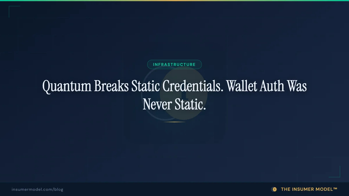 Third: even a broken signature reveals nothing exploitable. Suppose a quantum computer cracks the ES256 signature on an InsumerAPI attestation. What does the attacker learn? That a particular wallet met or did not meet a particular condition at a particular time. The attestation does not contain private keys. It does not contain balances. It does not contain any credential that grants access to funds. The boolean is the entire payload. Breaking the signature proves the boolean was not tampered with. It does not unlock anything.